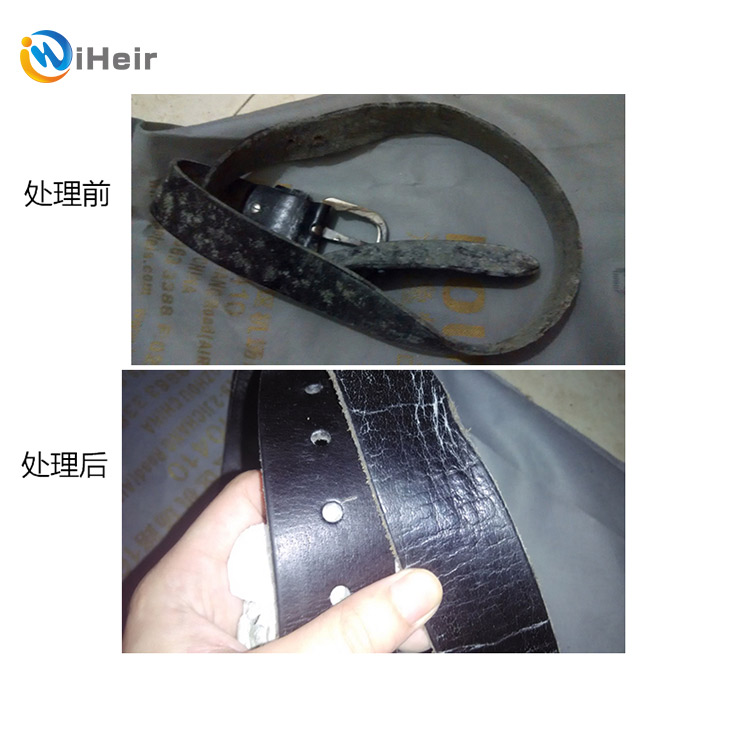 3.戴橡膠手套,用海綿一次蘸取少量的防霉抗菌膏,擦皮帶正反面兩遍,第1遍徹底擦去皮帶表面的霉菌,第二遍賦予皮帶一定的防霉功能。夾縫外采用合適方法將膏弄入,一根皮帶需1.2g左右的防霉抗菌膏iHeir-QF。注:以上步驟處理時(shí),應(yīng)該與生產(chǎn)、儲(chǔ)存車間分開,避免霉菌傳染。