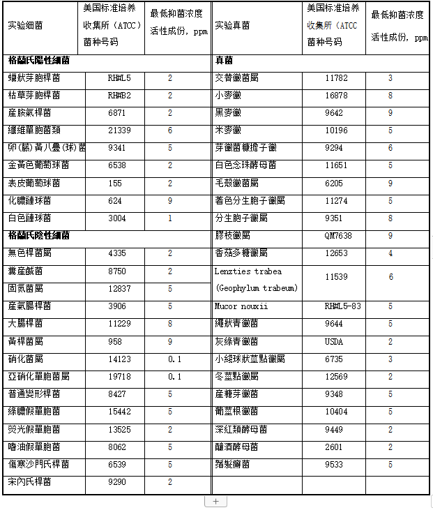 iHeir-TQ環(huán)保涂料防霉(抗菌)劑對細菌和真菌的突出低抑菌濃度: