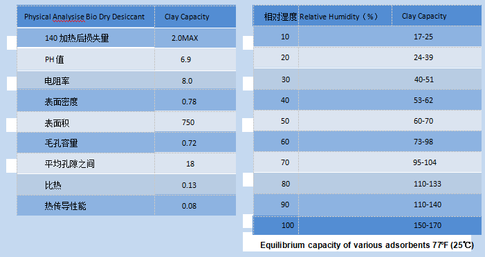 該產(chǎn)品不含任何添加劑、腐蝕性物質(zhì)和氯化物,純天然礦物加工而成。其PH 值顯中性,對任何金屬無任何腐蝕性。能廣泛用于紡織、鞋服、電子、電器、機械、藥品、食品等高低級產(chǎn)品的防潮
